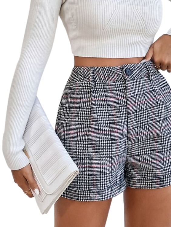 High Waist Glen Plaid Shorts quantity